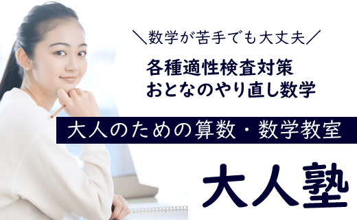 就職・転職・昇進試験を控えた方向けのSPI、Webテストや玉手箱などの各種試験の対策講座、趣味で数学を学びたい方、学び直したい方向けのやりなおし数学・趣味コース、
