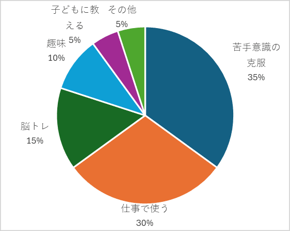 数学が苦手で、どうしても克服したくて…という方がもっとも多く、次いで、仕事で使う数字に強くなりたい方が続きます。
